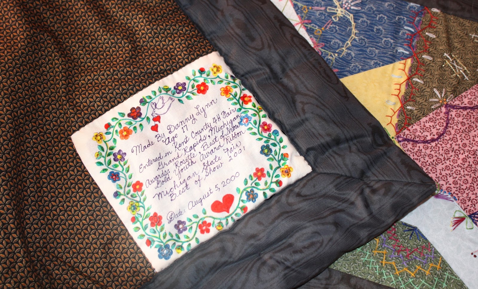 The quilt won an Outstanding Exhibit rosette, the Kent County 4-H Fair Best in Show and a Youth Gold Ribbon award in 2000. It went on to win the Best of Show at the 2001 Michigan State Fair.
